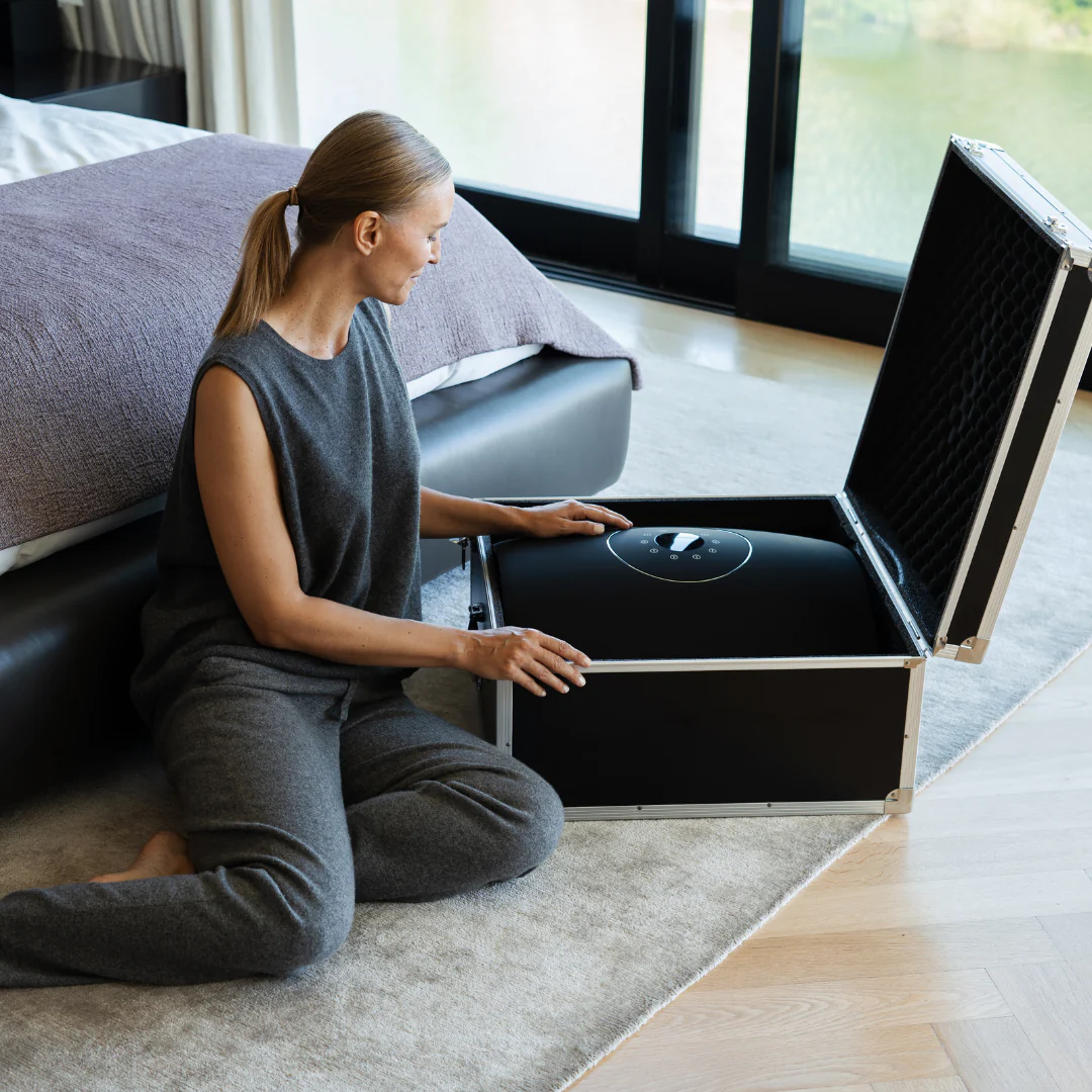 Cosmo is a revolutionary full-body LED device that offers a range of features to make at-home LED treatments more efficient and effective than ever before. With its patented foldable and portable design, Cosmo is easy to take with you wherever you go, allowing you to experience the benefits of LED light therapy no matter where you are. With 360 LED and infrared points, and a width of 23 inches, Cosmo is the most potent and efficient full-body LED device to be used on any area of the body.